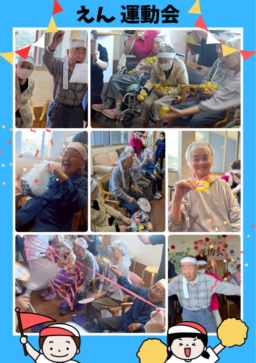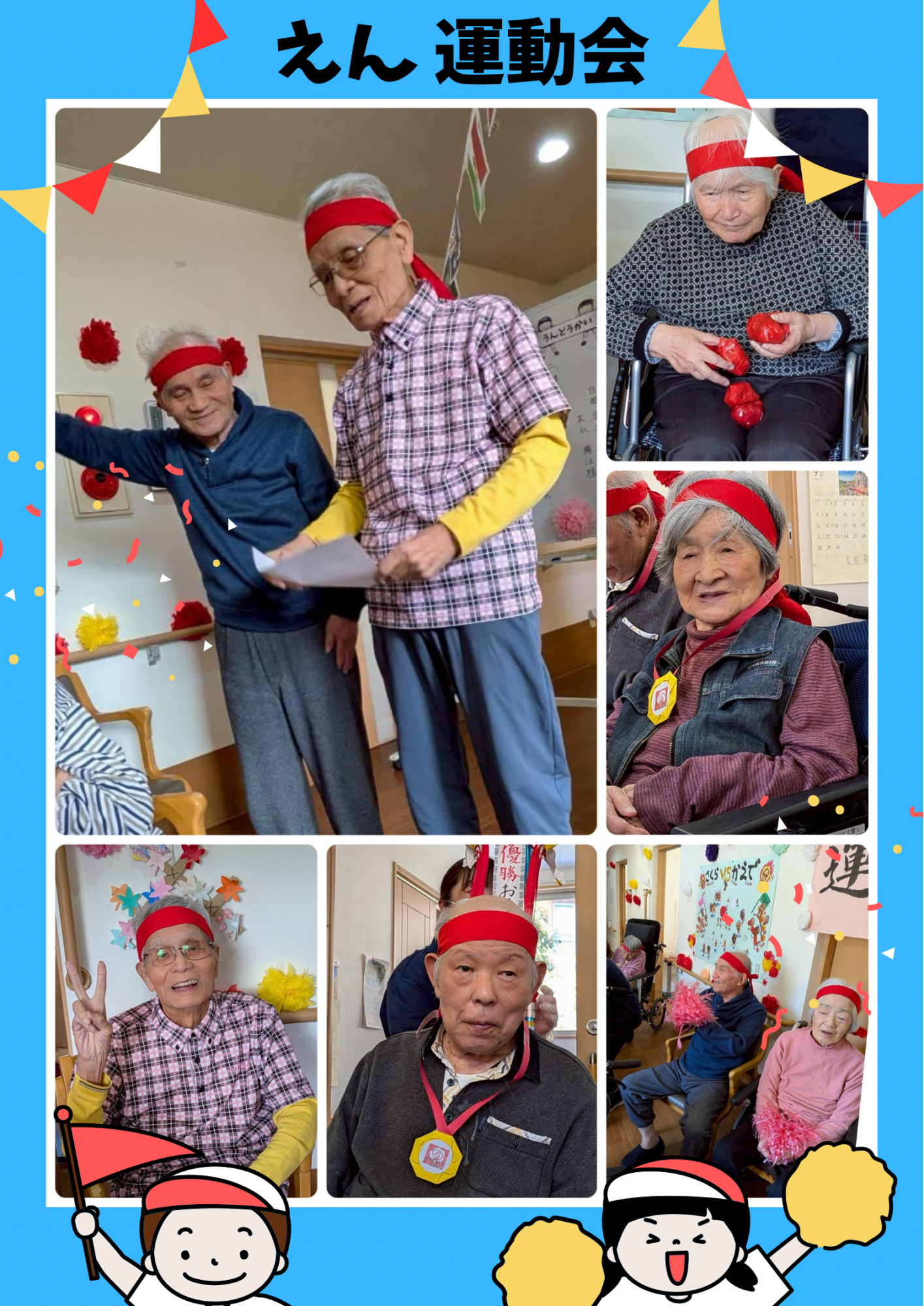 運動会 2025/11/29 未分類 今年も運動会を開催し、施設中が応援の声でいっぱいになりました! 皆さんが楽しめる競技を中心に行いました。 玉入れでは皆さんの驚くほどのコントロールの良さに職員もビックリしました。 笑いあり、勝負ありの、とても楽しい運動会となりました。 また来年もたのしみですね♪