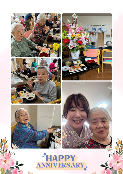創立記念日 2026/04/20 未分類 4月1日で、多機能ホームえんは14周年! 記念すべき日のメインイベントは…職人技が光る豪華握り寿司パーティーです✨ ネタが運ばれてくると、フロア中がパッと華やかな空気に。 「お寿司大好き!」と、皆さんの弾けるような笑顔が最高のプレゼントになりました🎁 美味しいものを食べて、笑って、元気に過ごす。 そんな当たり前で幸せな毎日を、これからも大切に積み重ねていきたいです。